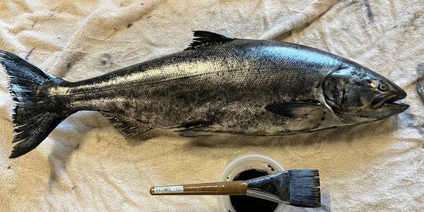 The simplistic yet bold contrast of the sumi ink on the mulberry paper and the over 150-year-old Japanese tradition of catching, printing, and preparing each fish for a meal speaks to me. I feel that the art of Gyotaku effortlessly captures the unique landscape we live in in Port Angeles. I've been studying and talking to Gyotaku masters, asking them questions about their craft, and exploring the art form while progressing my own unique style.